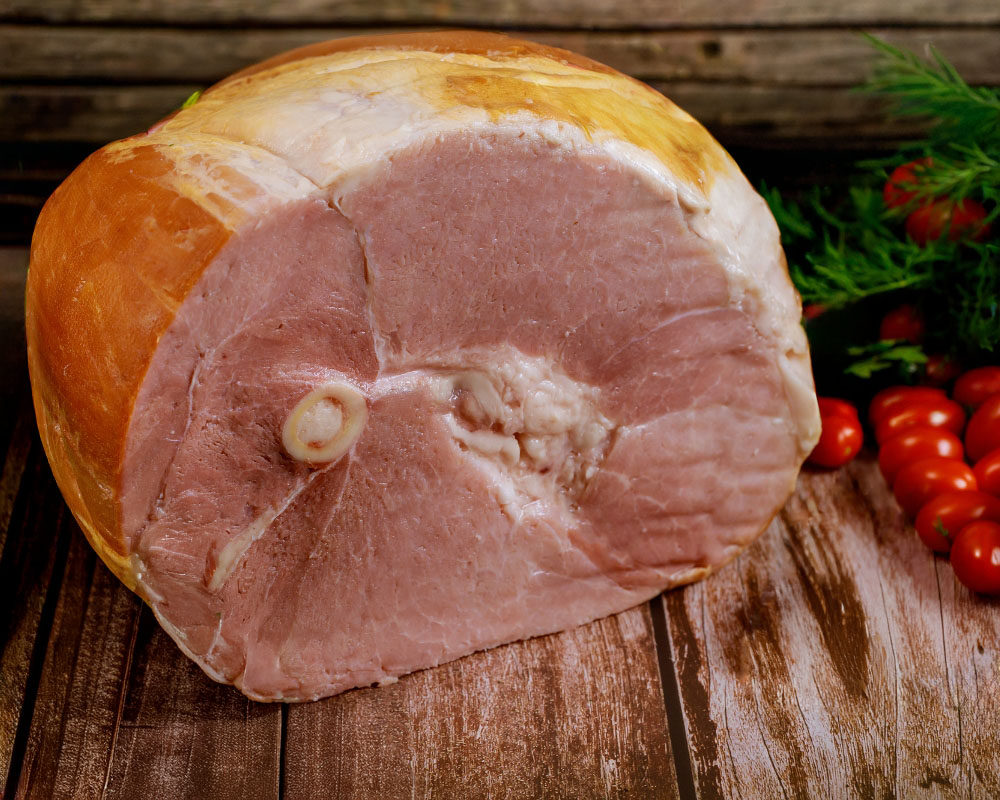 Pre-cooked New Zealand Ham on the bone. Product weight is approximately 4.25kg – 5kgs.